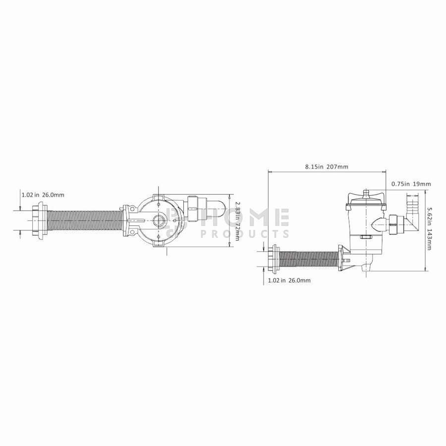 Ook bevat de pomp een roestvrijstalen pompas, en een robuuste met glasvezel gevulde ophaalbuis. Zijn slangpilaar met een buitendraad van 26 millimeter zorgt dat de pomp veel verschillende aansluitmogelijkheden heeft.