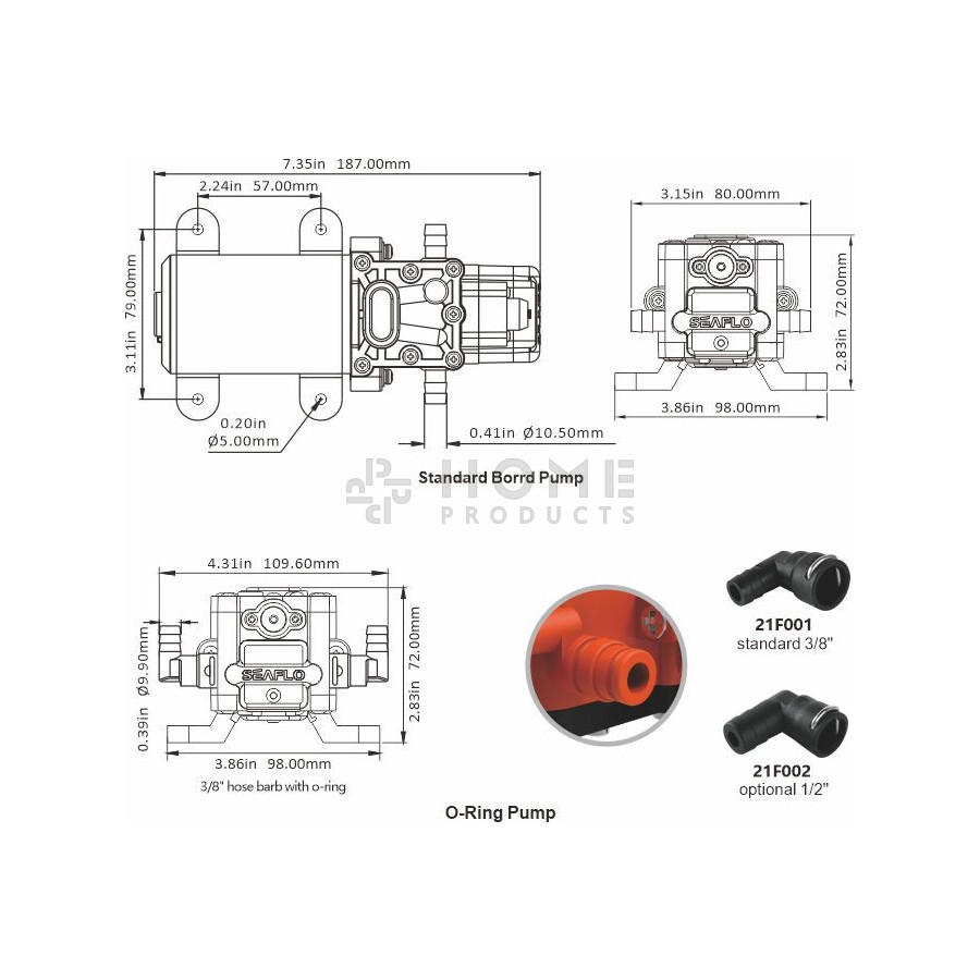 Ze verschaffen tot 5.0 liter per minuut. De waterafvoerpomp heeft meerdere uitlaten, 1 of 2 3/8\" (10 mm). Het systeem heeft een ingebouwde druk schakelaar, welke automatisch de pomp start of stopt als de kraan open of dicht gaat.