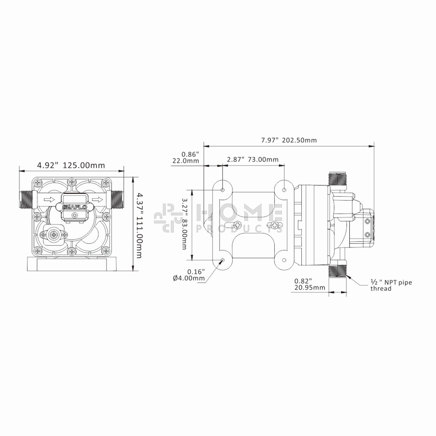De membraanpomp beschikt over twee slangaansluitingen en pompt tot 7,6 liter water per minuut. Verder bevat hij een ingebouwde drukschakelaar, deze start en stopt de pomp automatisch wanneer er een kraan wordt geopend of gesloten. Hij is eenvoudig te installeren en onderhouden, en kan aan tot vijf tappunten tegelijk aansluiten.